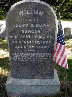 William fought in the Civil War (Union) as Private, 35th Regt. NJ Volunteers, Co. K.