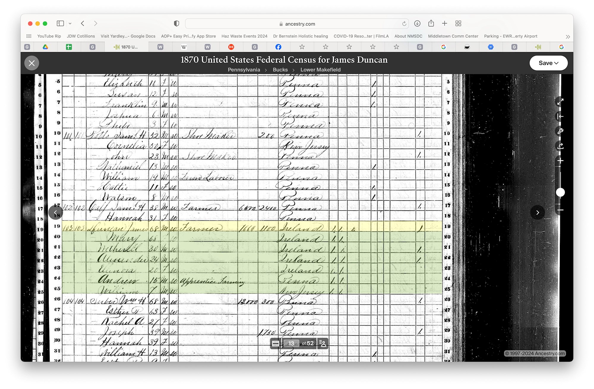 William Duncan was born in 1835 to parents James (1797-23 Aug 1880) and Mary (1802 -27 Feb 1890) in Irishtown, Antim, Ireland. (1)